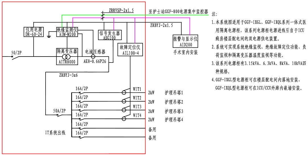 GGF-IXGL、IXQL醫(yī)用隔離電源柜系統(tǒng)接線圖