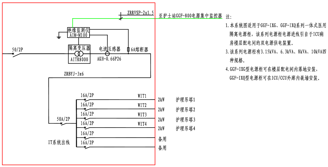 GGF-IXG、IXQ醫(yī)用隔離電源柜系統(tǒng)接線圖
