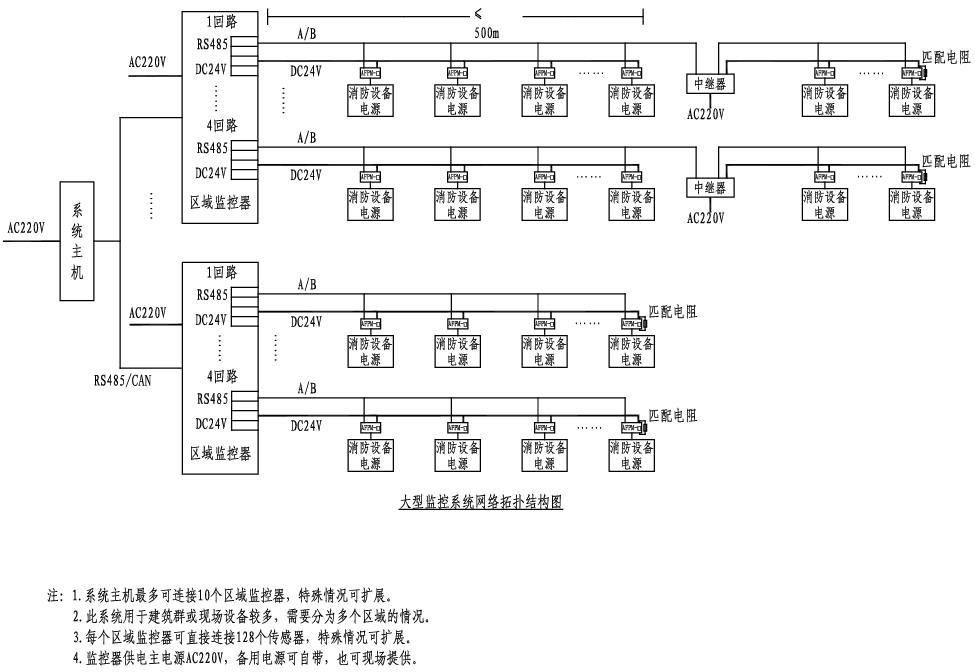 大型消防設(shè)備電源監(jiān)控系統(tǒng)圖