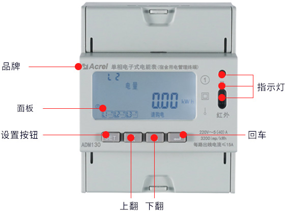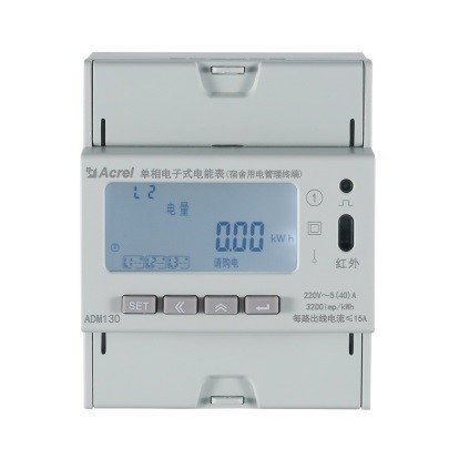 產(chǎn)品簡(jiǎn)介:ADM130 單相電子式電能表(宿舍用電管理終端)主要用于計(jì)量單相交流用電,終端可以一路火線進(jìn)線,三路火線并聯(lián)輸出分別計(jì)量照明、插座、空調(diào)回路,可進(jìn)行預(yù)付費(fèi)控制,并可對(duì)三路出線分別進(jìn)行負(fù)載控制和時(shí)間控制并支持近30條跳閘事件記錄存儲(chǔ)功能,管理終端支持485和紅外通訊,可方便地實(shí)現(xiàn)遠(yuǎn)程抄表、遠(yuǎn)程充值、遠(yuǎn)程控制等功能。