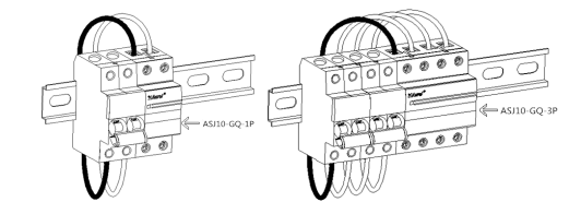 ASJ采用導(dǎo)軌安裝,直接安裝在35mmDIN導(dǎo)軌上,產(chǎn)品安裝接線示意圖如圖所示: