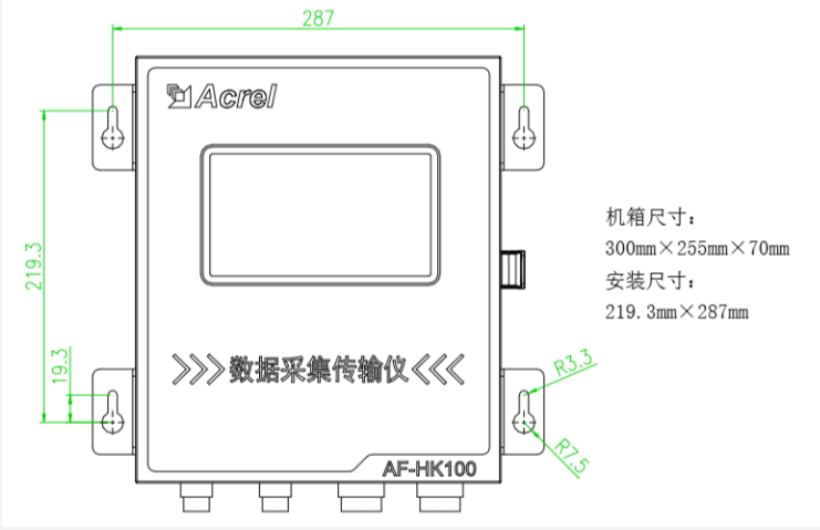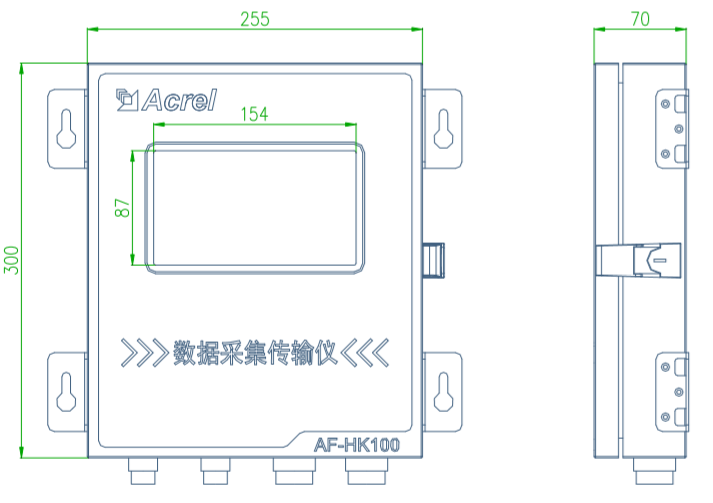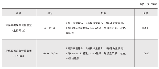 AF-HK100 污染源在線自動監(jiān)控(監(jiān)測)數(shù)據(jù)采集傳輸儀是應(yīng)環(huán)保領(lǐng)域各級國控、省控 及市控污染源環(huán)境在線監(jiān)控(監(jiān)測)系統(tǒng)的需求而開發(fā)研制的產(chǎn)品,通過模擬通道、開關(guān)通 道、數(shù)字通道(RS232/485/LoRa)與前端各類監(jiān)測儀器/儀表實現(xiàn)無縫連接,進行本地數(shù)據(jù) 采集、存儲、處理與展示,并通過 4G/有線等網(wǎng)絡(luò)將數(shù)據(jù)遠傳至監(jiān)控中心。