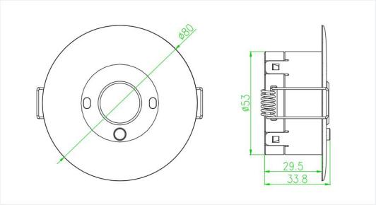 5、外形尺寸:ф80mm*33mm;產(chǎn)品外露尺寸:ф80mm*2.5mm