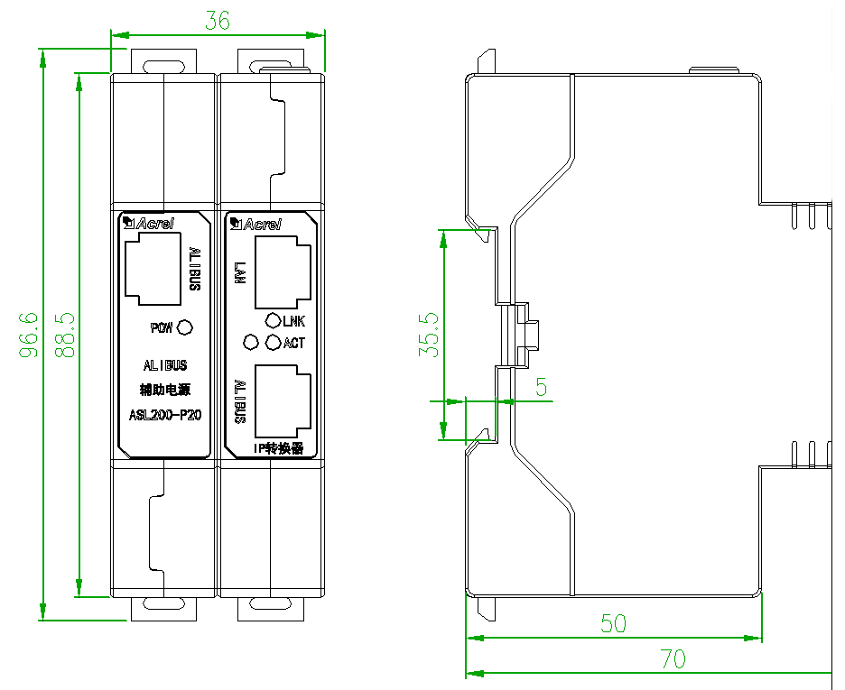 1、ALIBUS總線擴展模塊,通信鏈路供電。