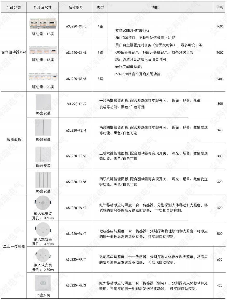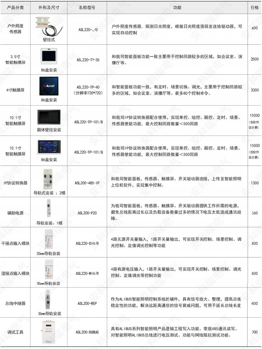 產(chǎn)品簡介:智能照明控制系統(tǒng)從功能上可以分為驅(qū)動器、傳感器和系統(tǒng)元件。各個元件通過專用Acrel-BUS總線以樹形、星形或線形的拓撲結(jié)構(gòu)靈活組網(wǎng)。驅(qū)動器負責接收和處理傳感器傳送的信號,并執(zhí)行相應(yīng)的操作,如開/ 關(guān)燈、調(diào)節(jié)燈的亮度。傳感器負責根據(jù)現(xiàn)場手動操作,或探測光線、溫度等的變化,向驅(qū)動器發(fā)出相應(yīng)的控制信號。系統(tǒng)元件主要負責搭建系統(tǒng)平臺,如系統(tǒng)電源、線路耦合器、傳輸介質(zhì)等。