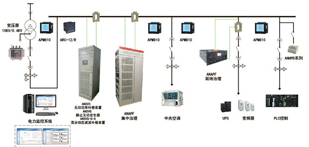 產(chǎn)品簡介:ANAPF系列有源電力濾波器通過電流互感器采集系統(tǒng)諧波電流,經(jīng)控制器快速計(jì)算并提取各次諧波電流的含量,產(chǎn)生諧波電流指令,通過功率執(zhí)行器件產(chǎn)生與諧波電流幅值相等方向相反的補(bǔ)償電流,并注入電力系統(tǒng)中,從而抵消非線性負(fù)載所產(chǎn)生的諧波電流。