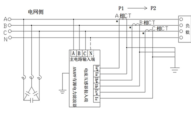 ANAPF系列有源電力濾波器通過電流互感器采集系統(tǒng)諧波電流,經(jīng)控制器快速計(jì)算并提取各次諧波電流的含量,產(chǎn)生諧波電流指令,通過功率執(zhí)行器件產(chǎn)生與諧波電流幅值相等方向相反的補(bǔ)償電流,并注入電力系統(tǒng)中,從而抵消非線性負(fù)載所產(chǎn)生的諧波電流。