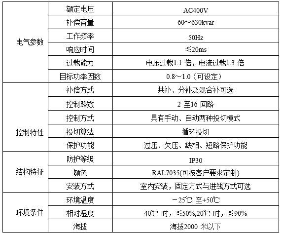 適用于頻率50Hz電壓0.4kV電網(wǎng)的無功功率自動補償。