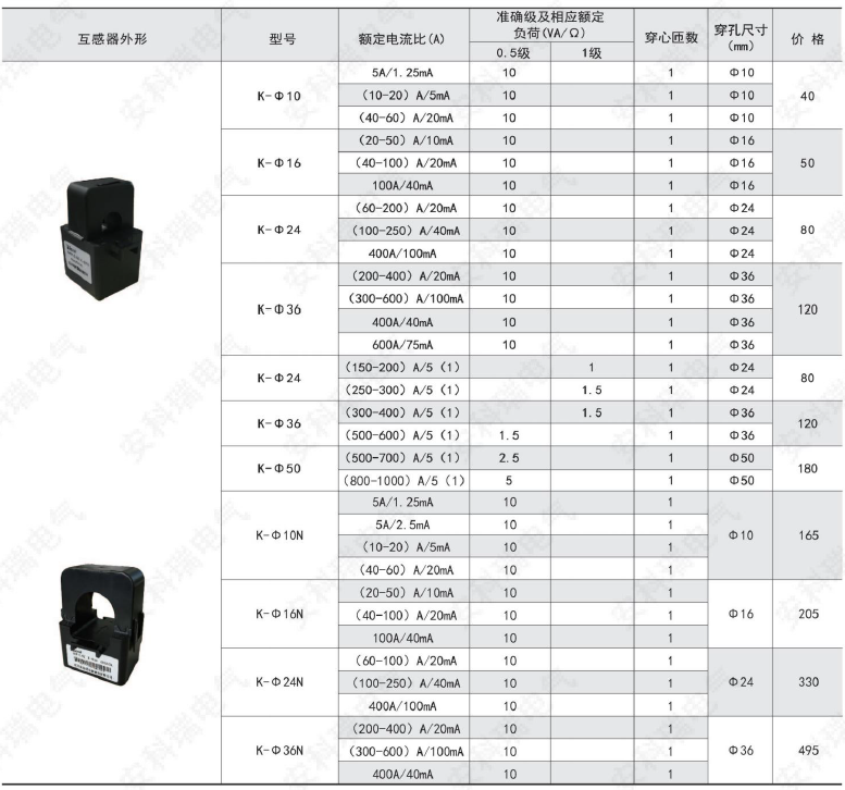 AKH-0.66/k-S系列開口式雙繞組電流互感器