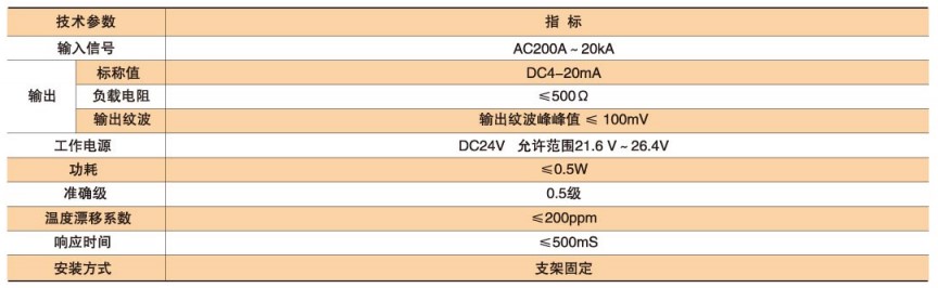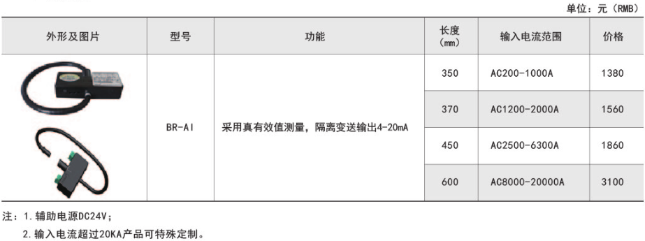 技術(shù)要求:輸入電流AC1000A;輸出DC4-20mA;準(zhǔn)確級0.5;長度350mm。