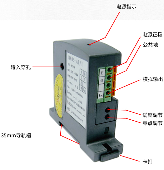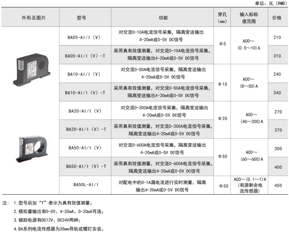 產(chǎn)品簡介:BA系列產(chǎn)品應(yīng)用電磁感應(yīng)原理,對電網(wǎng)中的交流電流進(jìn)行實(shí)時測量,將其隔離變換為標(biāo)準(zhǔn)的直流信號輸出。