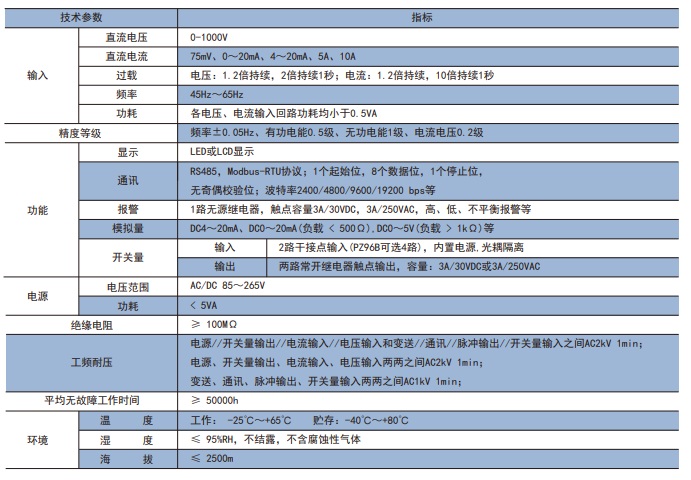 通訊協(xié)議:RS485接口 Modbus/RTU協(xié)議;DL/T645-2007 協(xié)議