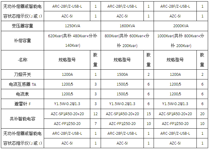 2、變壓器容量為400/800/1000/1250/1600/2000KVA的單相、三相混合補(bǔ)償應(yīng)用方案。