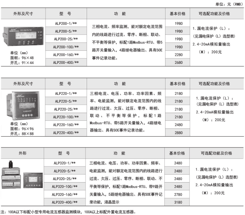 技術(shù)要求:輸入電壓AC 220V;工作頻率50Hz;電流變比200A/5A;漏電保護(hù)KB2模塊;準(zhǔn)確級(jí)0.5。