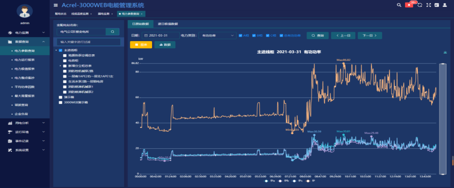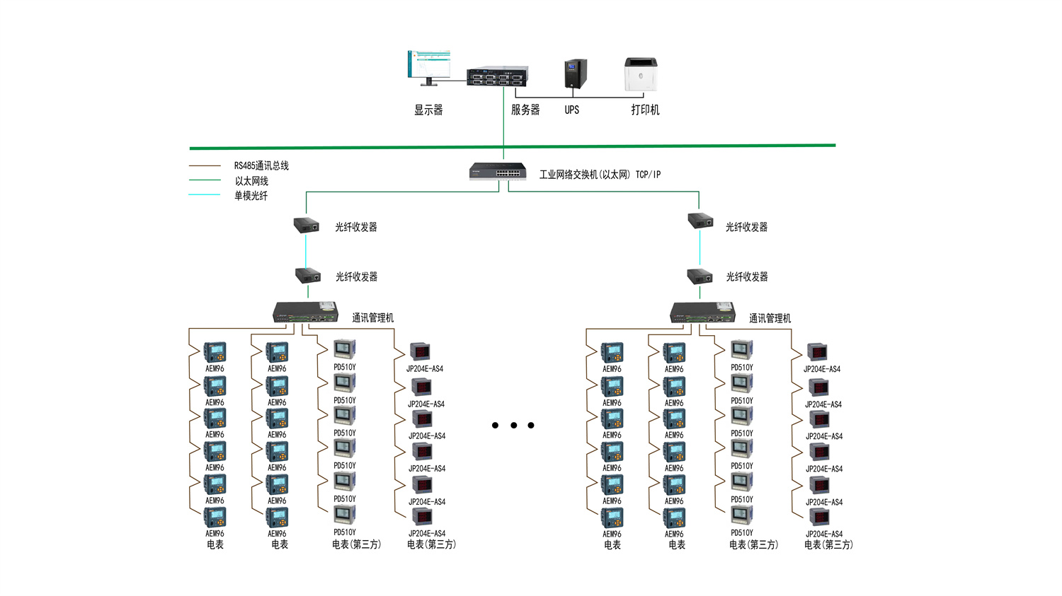 本項目電壓等級包含35kV、10kV及04kV,共安裝628只多功能數(shù)顯儀表,14只溫控儀。實現(xiàn)各回路及設備實時在線監(jiān)測、故障報警、用能統(tǒng)計、能效分析等功能。