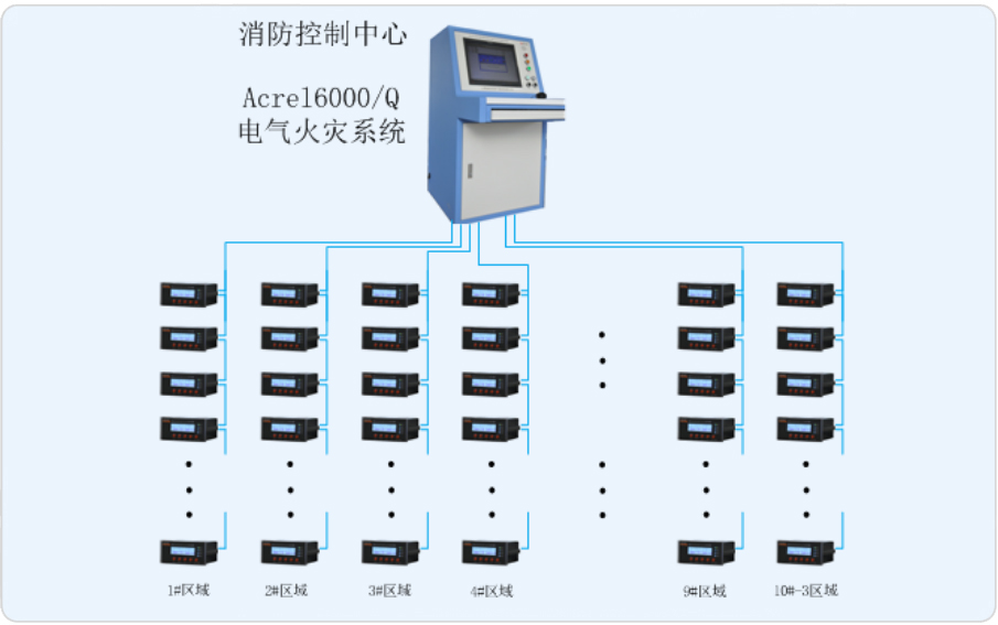 1.監(jiān)控報警 監(jiān)控設備能接收多臺探測器的漏電、溫度信息,報警時發(fā)出聲光報警信號