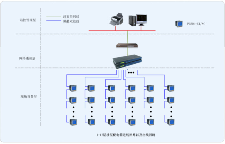 針對普天大廈的辦公樓性質(zhì),為了便于物業(yè)后期對用能的管理,以及上層管理人員對大廈能耗趨勢的及時了解;設(shè)計一套能耗管理系統(tǒng)檢測大樓內(nèi)各重要用電回路的用能情況,通過日、月、年報表,同比環(huán)比等形式顯示大樓的用能狀況。