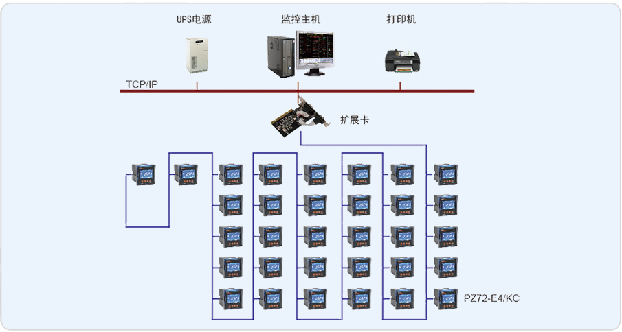 安科瑞電氣股份有限公司于2012年11月承接了常熟滌綸有限公司配電改造監(jiān)控系統(tǒng)項目。采用Acrel-3000電能管理系統(tǒng),完成了對四個廠區(qū)的電能計量功能,四個廠區(qū)共計一個高壓出線回路,32個低壓出線回路,均安裝PZ72-E4/KC可編程電測表,所有儀表均通過RS485總線連接至擴展卡,再通過擴展卡將數據上傳至到整個電能管理系統(tǒng)中。