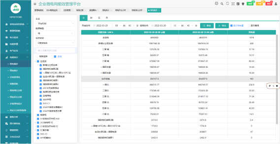 平臺(tái)具備定時(shí)抄表匯總統(tǒng)計(jì)功能,用戶可以自由查詢平臺(tái)正常運(yùn)行以來任意時(shí)間段內(nèi)各配電節(jié)點(diǎn)的用電情況。