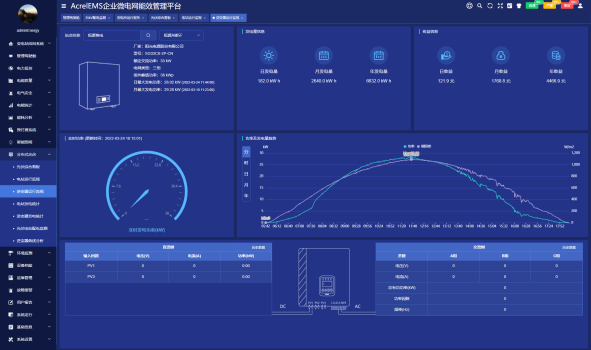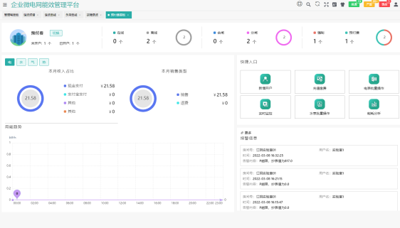 為平臺(tái)主界面,針對(duì)于企業(yè)微電網(wǎng)的源、網(wǎng)、荷、儲(chǔ)、充的各個(gè)關(guān)鍵節(jié)點(diǎn)安裝監(jiān)測(cè)、分析、保護(hù)、治理裝置, 通過高性能邊緣計(jì)算網(wǎng)關(guān)采集數(shù)據(jù)并上傳至企業(yè)微網(wǎng)平臺(tái)。平臺(tái)根據(jù)新的電網(wǎng)價(jià)格、用電負(fù)荷、電網(wǎng)調(diào)度指令等情況, 調(diào)整各系統(tǒng)控制策略并遠(yuǎn)程下發(fā),使企業(yè)微電網(wǎng)始終高效穩(wěn)定運(yùn)行,降低企業(yè)用電成本,實(shí)現(xiàn)能源互聯(lián)、信息互動(dòng)。