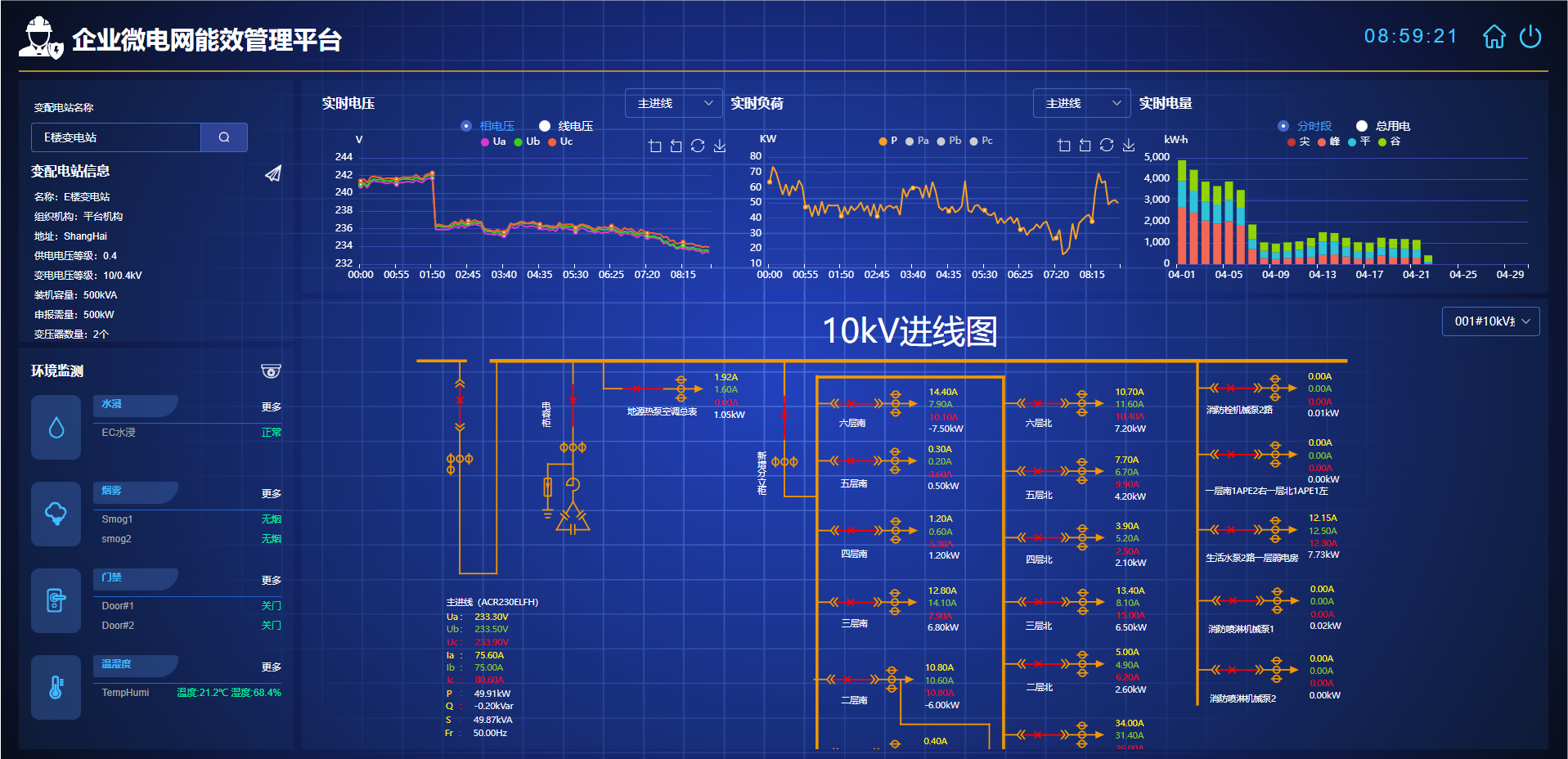 平臺(tái)可實(shí)時(shí)監(jiān)測(cè)變電所內(nèi)變壓器、各配電回路的運(yùn)行情況,并記錄各電力參數(shù)的歷史數(shù)據(jù)。