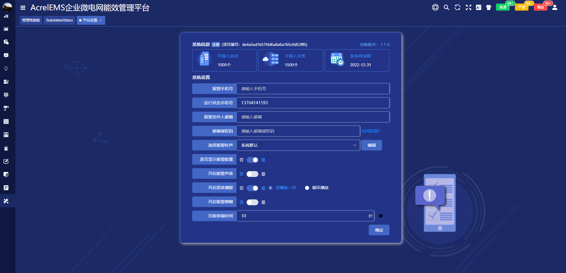 平臺(tái)接收到報(bào)警信息后,可通過短信或者APP推送報(bào)警信息,相關(guān)報(bào)警閾值可根據(jù)要求靈活設(shè)置,并對(duì)報(bào)警設(shè)置不同級(jí)別。