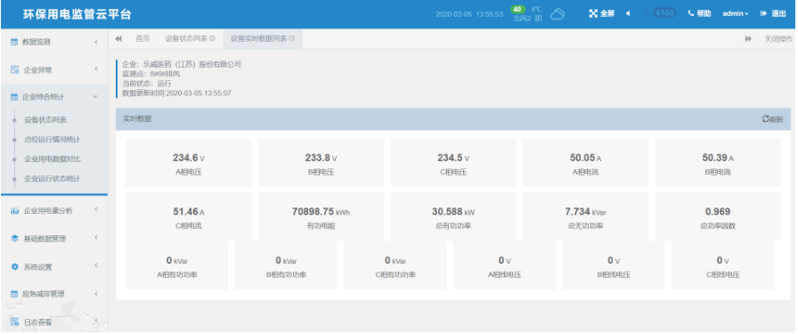 企業(yè)設施運行數(shù)據(jù):展示接入平臺的生產(chǎn)點位以及關聯(lián)的治理點位各個時間點的數(shù)據(jù)上報情況。