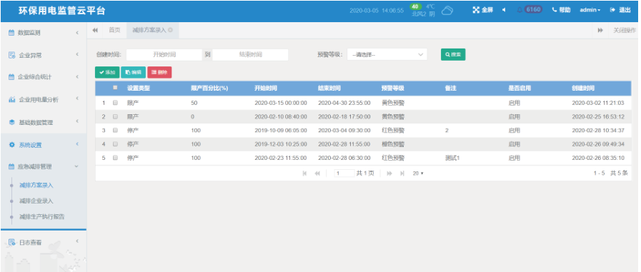 減排方案錄入:根據(jù)減排計劃錄入減排方案,支持應急預案的啟動。