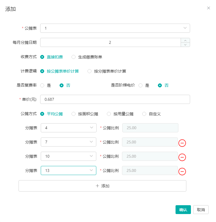 支持公區(qū)電費(fèi)分?jǐn)?,每月自?dòng)將公攤表用能按照設(shè)置好的規(guī)則下發(fā)給對(duì)應(yīng)的分?jǐn)偙?,減輕物業(yè)公區(qū)統(tǒng)計(jì)收費(fèi)壓力。