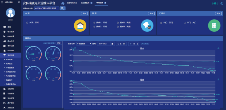 實(shí)時(shí)監(jiān)測(cè)變電所的運(yùn)行環(huán)境,包括環(huán)境溫濕度、水浸、門磁、煙感、線纜溫度等,并可實(shí)現(xiàn)視頻監(jiān)視和錄像回放;