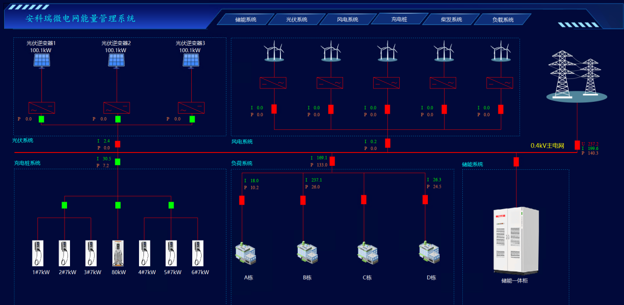 安科瑞企業(yè)微電網(wǎng)能量管理系統(tǒng)Acrel-2000MG,是安科瑞根據(jù)新型電力系統(tǒng)下微電網(wǎng)監(jiān)控系統(tǒng)與微電網(wǎng)能量管理系統(tǒng)的要求,總結(jié)國內(nèi)外的研究和生產(chǎn)的先進(jìn)經(jīng)驗,專門研制出的企業(yè)微電網(wǎng)能量管理系統(tǒng)。本系統(tǒng)滿足光伏系統(tǒng)、風(fēng)力發(fā)電、儲能系統(tǒng)以及充電樁的接入,全天候進(jìn)行數(shù)據(jù)采集分析,監(jiān)視光伏、風(fēng)電、儲能系統(tǒng)、充電樁及傳統(tǒng)負(fù)荷的運(yùn)行狀態(tài)及健康狀況,是一個集監(jiān)控系統(tǒng)、能量管理為一體的管理系統(tǒng)。該系統(tǒng)在安全穩(wěn)定的基礎(chǔ)上以經(jīng)濟(jì)優(yōu)化運(yùn)行為目標(biāo),促進(jìn)可再生能源應(yīng)用,提高電網(wǎng)運(yùn)行穩(wěn)定性、補(bǔ)償負(fù)荷波動;有效實(shí)現(xiàn)用戶側(cè)的需求管理,提高電力設(shè)備運(yùn)行效率、降低供電成本。為企業(yè)微電網(wǎng)能量管理提供安全、可靠、經(jīng)濟(jì)運(yùn)行提供了全新的解決方案。