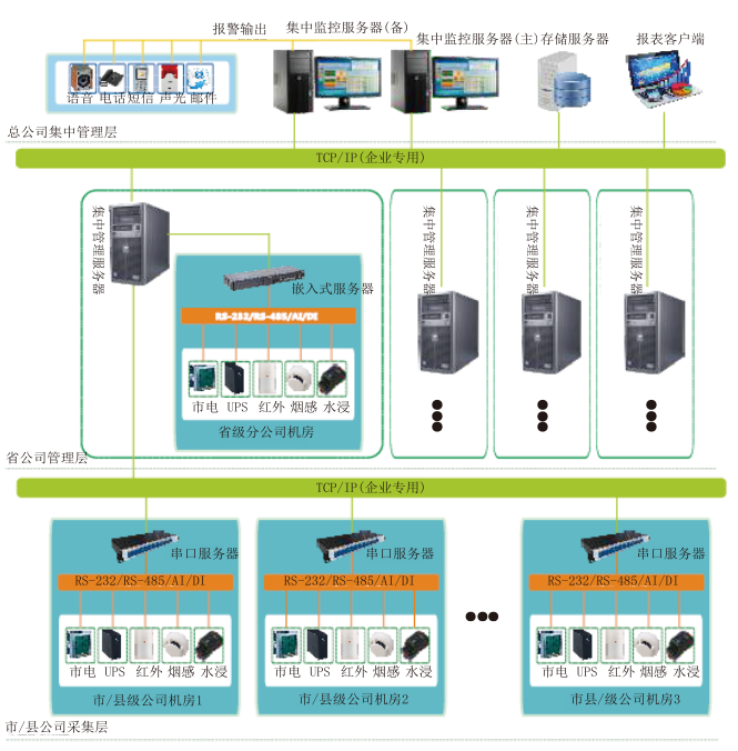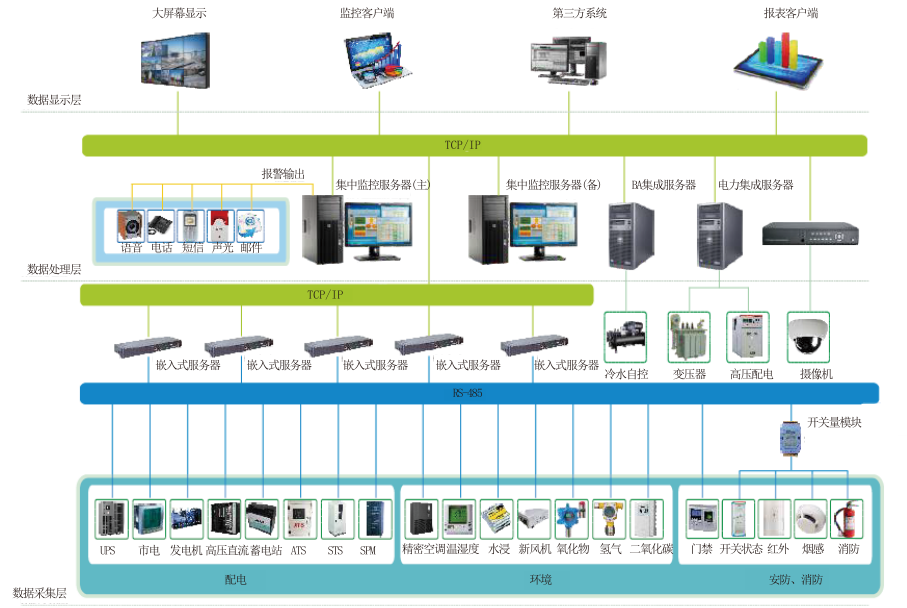 基礎(chǔ)設(shè)施集中監(jiān)控采用一體化監(jiān)控采集系統(tǒng)(運(yùn)行在嵌入式服務(wù)器上),系統(tǒng)主要功能有: