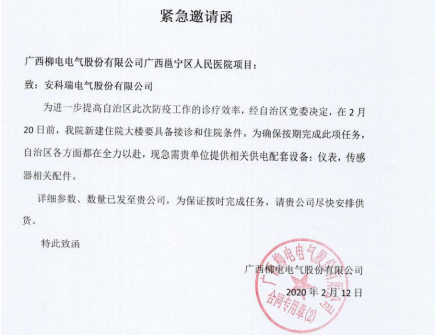抗擊新冠肺炎,是一場沒有硝煙的戰(zhàn)爭,走在一線的醫(yī)護(hù)人員,承受著不為人知的壓力,與此同時,2月12日安科瑞接到廣西南寧醫(yī)院緊急邀請函,希望在2月20日前,完成供貨任務(wù)。