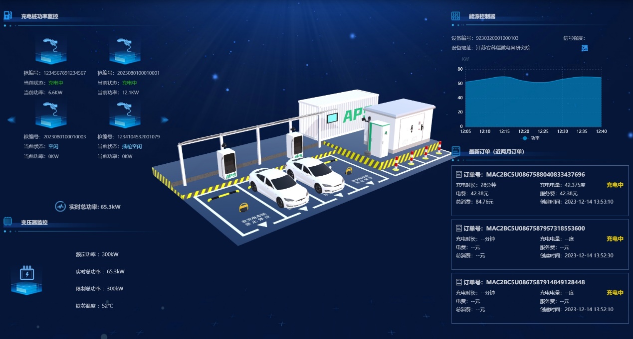 該充電站利用有序充電運(yùn)營平臺進(jìn)行充電樁管理,通過智能調(diào)度系統(tǒng)根據(jù)監(jiān)測設(shè)備實(shí)時功率上報,對充電站的總功率進(jìn)行超限檢測。一旦超過設(shè)定限制,系統(tǒng)會按照時間、電量或均衡的方式對充電樁進(jìn)行降檔調(diào)度,以有效控制功率。當(dāng)總功率恢復(fù)正常時,系統(tǒng)會根據(jù)智能算法對降檔設(shè)備進(jìn)行有序調(diào)節(jié)升檔,合理分配充電資源。