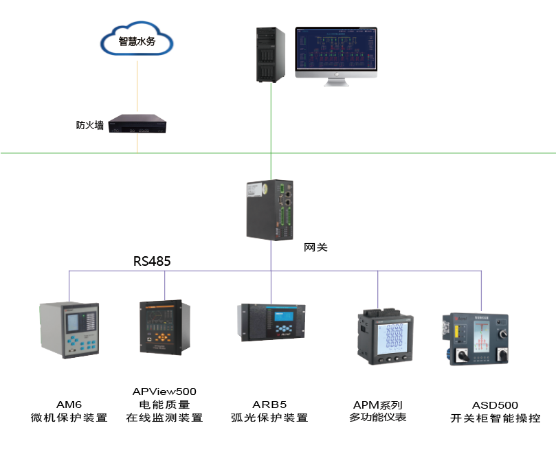 電力監(jiān)控系統(tǒng)實(shí)現(xiàn)對(duì)污水處理變電站、配電房?jī)?nèi)斷路器、變壓器、柴油發(fā)電機(jī)以及其它重要設(shè)備進(jìn)行監(jiān)視、測(cè)量、記錄、報(bào)警等功能,并與保護(hù)設(shè)備和遠(yuǎn)方控制中心及其他設(shè)備通信,實(shí)時(shí)掌握變電站和配電房運(yùn)行狀況,快速排除故障,保障水處理的供電可靠性。