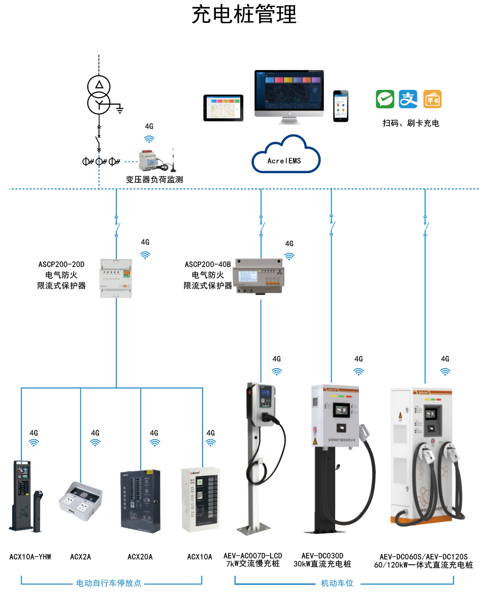藥企員工出行有電動(dòng)汽車(chē)和電動(dòng)自行車(chē),需要提供充電樁。充電樁管理系統(tǒng)通過(guò)物聯(lián)網(wǎng)技術(shù)對(duì)接入系統(tǒng)的充電樁站點(diǎn)和各個(gè)充電樁進(jìn)行不間斷地?cái)?shù)據(jù)采集和監(jiān)控,解決廠區(qū)充電樁使用、監(jiān)控問(wèn)題。電動(dòng)自行車(chē)充電可采用投幣、掃碼充電方式,電動(dòng)汽車(chē)支持IC卡和掃碼充電方式。充電樁系統(tǒng)可實(shí)時(shí)遠(yuǎn)程完成啟動(dòng)充電、強(qiáng)制停止、單價(jià)設(shè)置等控制指令,用戶可通過(guò)APP、微信、支付寶小程序掃描二維碼,進(jìn)行支付后,系統(tǒng)發(fā)起充電請(qǐng)求,控制二維碼對(duì)應(yīng)的充電樁完成電動(dòng)汽車(chē)的充電過(guò)程。同時(shí)對(duì)各類(lèi)故障如充電機(jī)過(guò)溫保護(hù)、充電機(jī)輸入輸出過(guò)壓、欠壓、絕緣檢測(cè)故障等一系列故障進(jìn)行預(yù)警;能夠遠(yuǎn)程控制,提供財(cái)務(wù)報(bào)表和數(shù)據(jù)分析等功能。