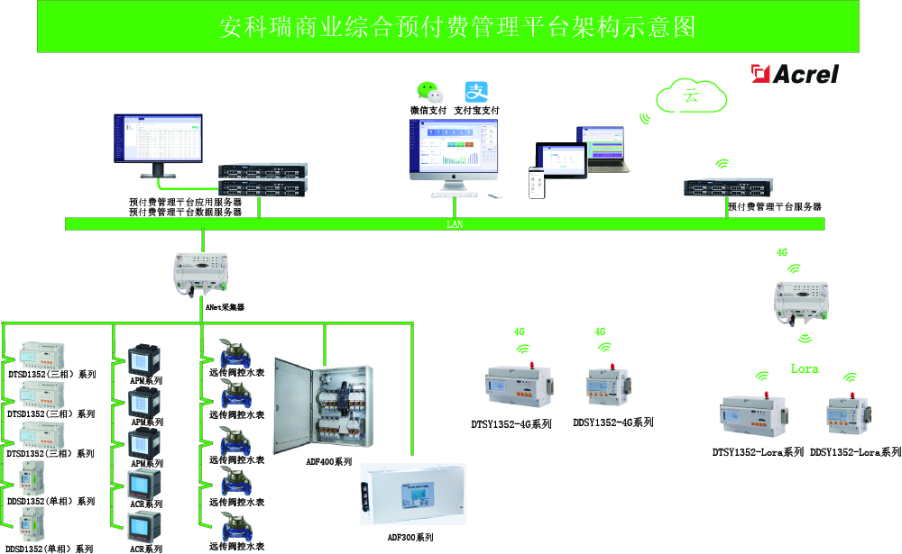 商業(yè)中心的能源消耗比重較大,商業(yè)用樓的節(jié)能問題正越來越受到人們的重視。傳統(tǒng)方式的抄表管理人工成本高、抄表數(shù)據(jù)易出錯、還常常面臨追繳費(fèi)困難的問題。商業(yè)預(yù)付費(fèi)系統(tǒng)有效的解決了以上問題,還通過對能源數(shù)據(jù)的集中統(tǒng)一采集、對比、分析提高能源利用率,實(shí)現(xiàn)高效的節(jié)能,提高經(jīng)濟(jì)效益的同時提升辦公樓整體形象。該系統(tǒng)采用后臺自動和手動拉合閘操作,采用短信通知等人性化管理手段提前通知用戶繳費(fèi),支持微信支付寶等多種繳費(fèi)方式,使得預(yù)付費(fèi)管理靈活可靠。 同時后臺自動生成賬單,并進(jìn)行用電分析,大大提高了用能的智能化管理。本系統(tǒng)充分滿足了用戶的差異化用能環(huán)境和管理需求,是經(jīng)濟(jì)和實(shí)用的用能收費(fèi)管理系統(tǒng)。