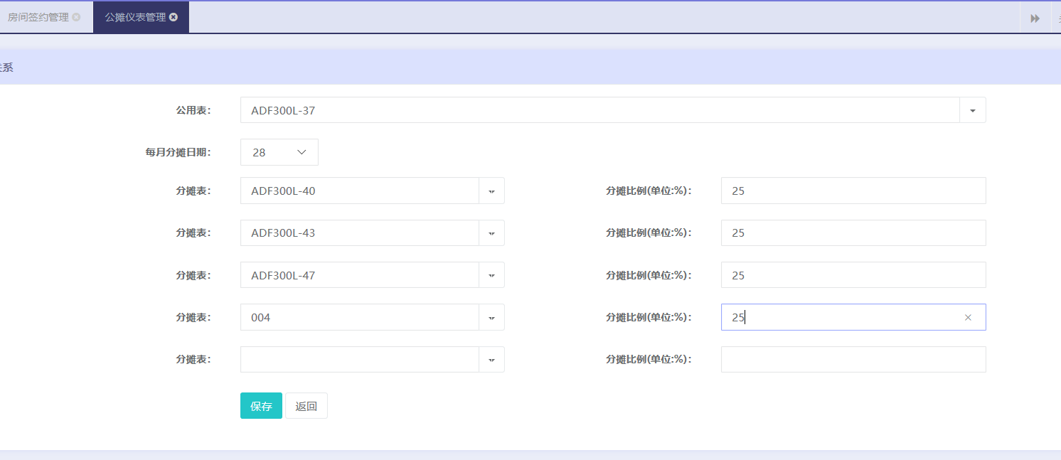 指定某塊表為主表,然后分配關(guān)聯(lián)子表,系統(tǒng)每個月自動將主表的用電按比例換算成電費(fèi)從子表中扣除,這樣可以剩余人工統(tǒng)計的麻煩。