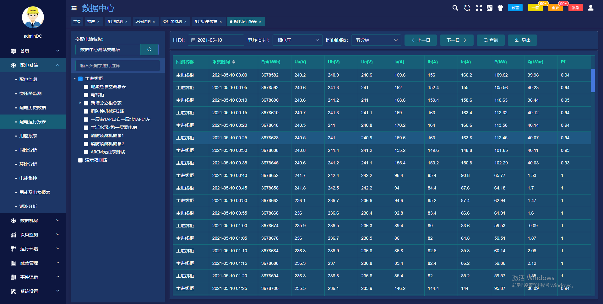 配電運(yùn)行報表將所有回路的所有參數(shù)顯示在報表中,以便用戶整體監(jiān)測回路運(yùn)行狀態(tài)。