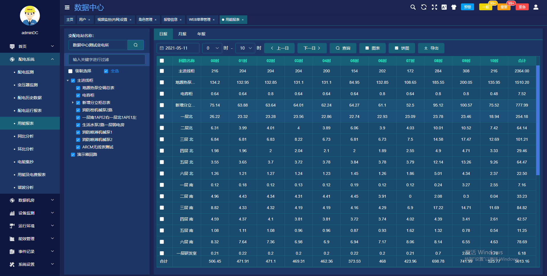將各個回路,每個時段的用能情況統(tǒng)計到報表中,直觀顯示各日、月、年的用能。