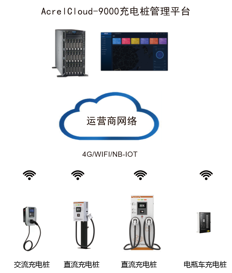 數(shù)據(jù)中心停車場有電動(dòng)汽車和電動(dòng)自行車,均需要提供充電樁。充電樁管理系統(tǒng)通過物聯(lián)網(wǎng)技術(shù)對接入系統(tǒng)的充電樁站點(diǎn)和各個(gè)充電樁進(jìn)行不間斷地?cái)?shù)據(jù)采集和監(jiān)控,解決物業(yè)、用電管理部門的充電樁使用、監(jiān)控問題。電動(dòng)自行車充電可采用投幣、掃碼充電方式,電動(dòng)汽車支持IC卡和掃碼充電方式。遠(yuǎn)程充電樁系統(tǒng)可實(shí)時(shí)遠(yuǎn)程完成啟動(dòng)充電、強(qiáng)制停止、單價(jià)設(shè)置等控制指令,用戶可通過APP、微信、支付寶小程序掃描二維碼,進(jìn)行支付后,系統(tǒng)發(fā)起充電請求,控制二維碼對應(yīng)的充電樁完成電動(dòng)汽車的充電過程。同時(shí)對各類故障如充電機(jī)過溫保護(hù)、充電機(jī)輸入輸出過壓、欠壓、絕緣檢測故障等一系列故障進(jìn)行預(yù)警;能夠遠(yuǎn)程控制,提供財(cái)務(wù)報(bào)表和數(shù)據(jù)分析等功能。