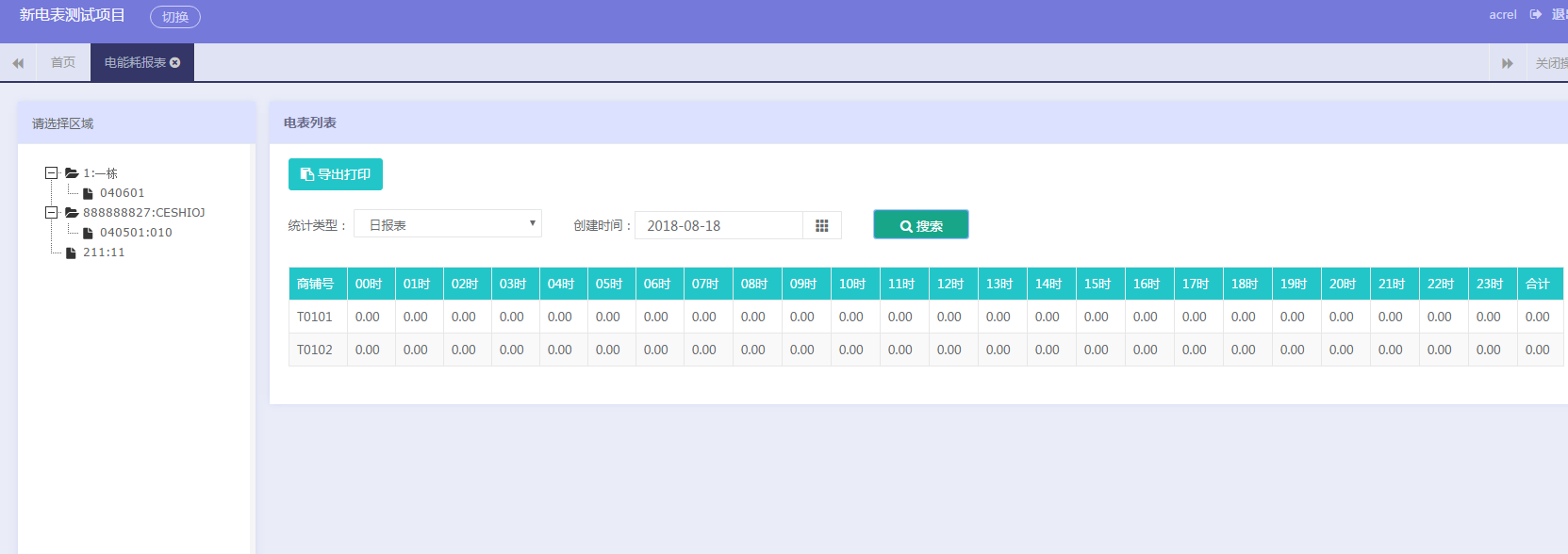 6)報表中心:提供售電、售水財務(wù)報表、用能報表、報警報表等查詢,本系統(tǒng)所有的報表及記錄查詢,都支持excel格式導(dǎo)出。