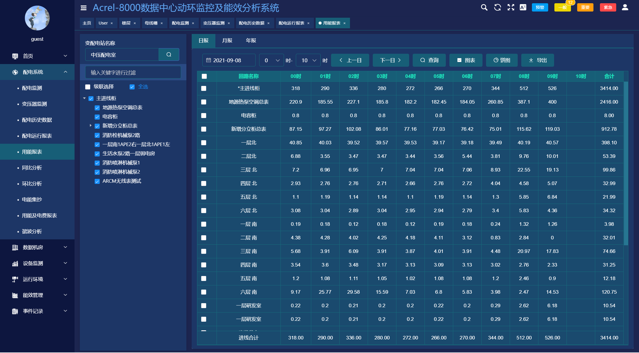 電力監(jiān)控系統以豐富的報表體支撐量體系的完整性。系統具備定時抄表匯總統計功能,用戶可以自由查詢自系統正常運行以來任意時間段內各配電節(jié)點的用電情況,即該節(jié)點進線用電量與各分支回路消耗電量的統計分析報表。