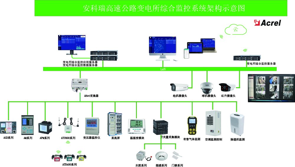 Acrel-2000E配電室綜合監(jiān)控系統(tǒng),可實(shí)現(xiàn)開(kāi)關(guān)柜運(yùn)行監(jiān)控、高壓開(kāi)關(guān)柜帶電顯示、母線及電纜測(cè)溫監(jiān)測(cè)、環(huán)境溫濕度監(jiān)測(cè)、有害氣體監(jiān)測(cè)、安防監(jiān)控,可對(duì)燈光、風(fēng)機(jī)、除濕機(jī)、空調(diào)控制等設(shè)備進(jìn)行聯(lián)動(dòng)控制。實(shí)現(xiàn)動(dòng)力環(huán)境各數(shù)據(jù)的檢測(cè)與設(shè)備控制,優(yōu)化動(dòng)力環(huán)境,避免運(yùn)行環(huán)境的失控導(dǎo)致配電設(shè)備運(yùn)行故障,保證維護(hù)人員安全,延長(zhǎng)設(shè)備使用壽命,實(shí)現(xiàn)配電動(dòng)力環(huán)境的分布式遠(yuǎn)程管理。