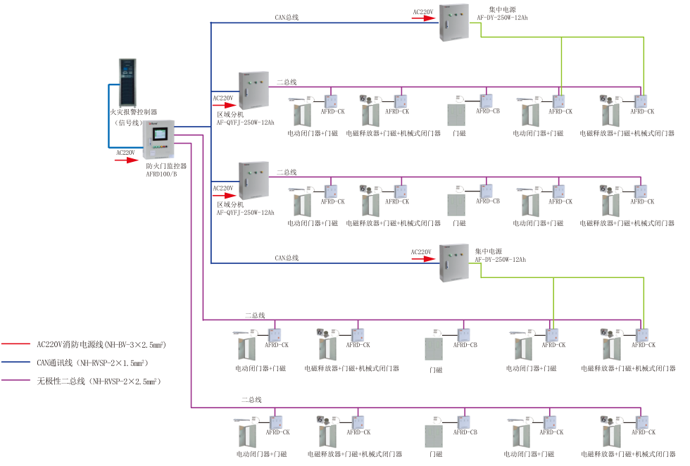 本系統(tǒng)可與火災(zāi)自動報警系統(tǒng)聯(lián)動,當(dāng)發(fā)生火情時,可接收火災(zāi)報警系統(tǒng)發(fā)出的信號,并通過總線,將指令發(fā)布到每個終端,自動關(guān)閉所有常開防火門,隔離火源和煙霧。